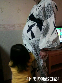 お腹に向かって、「ママいたいって!め!!」と叱る( *´艸`)