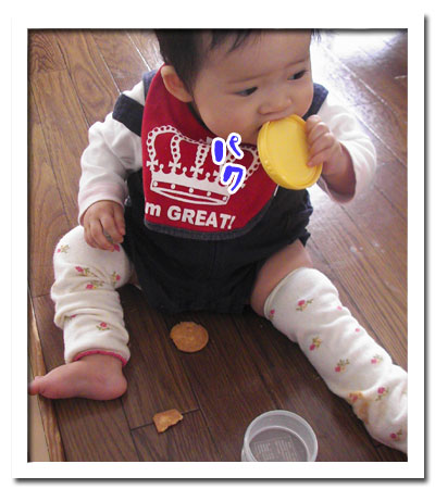 ビスケットを入れてるタッパのふたを自分で取ってました。