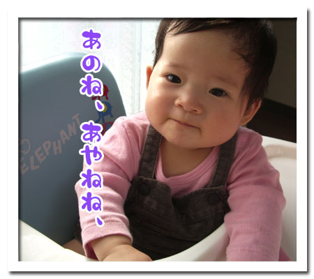 手を口に入れる癖ができた。キャハハハと笑うときに口に手をあてる癖がある、あやね。