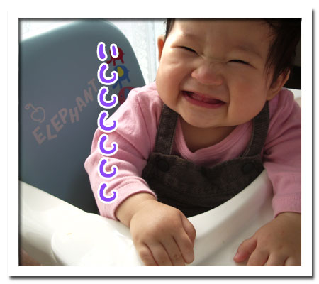笑うとき以外にも手を口に入れてあむあむしてる。