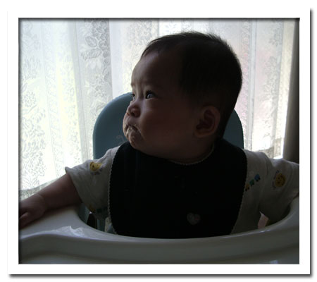 先に桃を食べさせて、お粥をあげたら食べたw