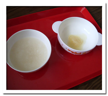 人参粥は半分、バナナミルクは一口だけ食べた!