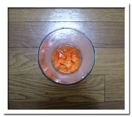 人参の皮を剥いて、1cmの厚さの輪切りにしたものを