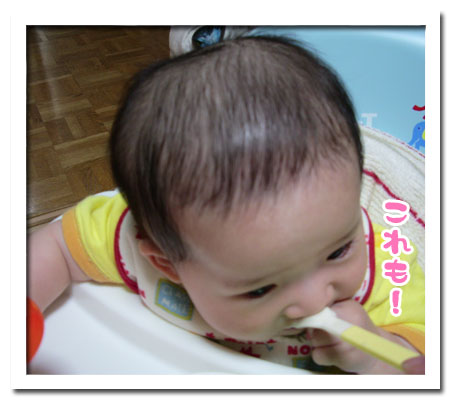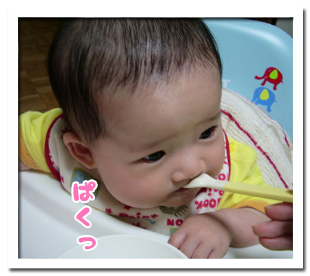 すでにお粥小さじ3食べてるよ・・・o○(。`・д・)